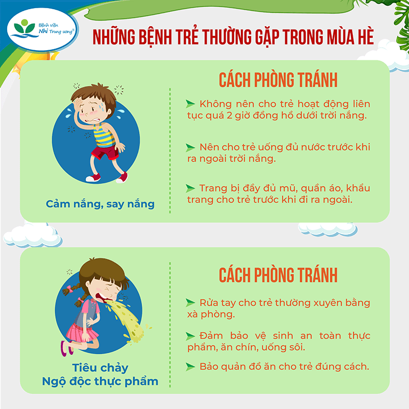 Mùa hè là thời điểm trẻ em và mọi người thường có nhiều hoạt động ngoài trời, du lịch, vui chơi… Tuy nhiên, để đảm bảo sức khỏe, chúng ta cần trang bị kiến thức phòng tránh các bệnh thường gặp. Mỗi người hãy là một "lá chắn" cho bản thân và cộng đồng bằng những hành động thiết thực, từ việc rửa tay, uống đủ nước đến ăn uống hợp vệ sinh. Phòng bệnh hơn chữa bệnh!
